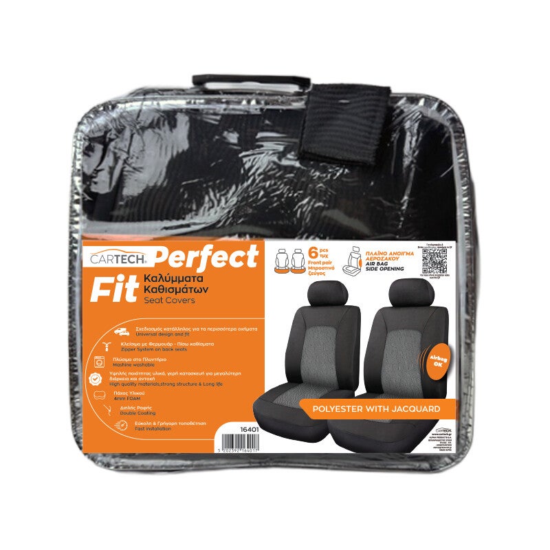 ΚΑΛΥΜΜΑΤΑ ΚΑΘΙΣΜΑΤΩΝ ΜΠΡΟΣΤΙΝΑ ΖΕΥΓΟΣ 6ΤΜΧ PERFECT FIT POLYESTER WITH JACQUARD ΜΑΥΡΟ-ΓΚΡΙ